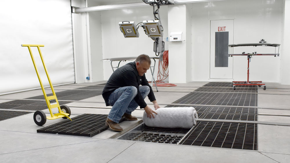 Paint booth protection products ā such as floor paper and Booth ShieldĀ® peelable booth coatings from Global Finishing SolutionsĀ® (GFS) ā are a simple way to protect your booth surfaces and prevent overspray buildup. Once soiled, these products can be quickly removed and reapplied. Another paint booth floor product that helps to trap dust and overspray is the PIGĀ® GrippyĀ® Adhesive Mat. This durable, padded mat can be vacuumed daily to remove contaminants.
