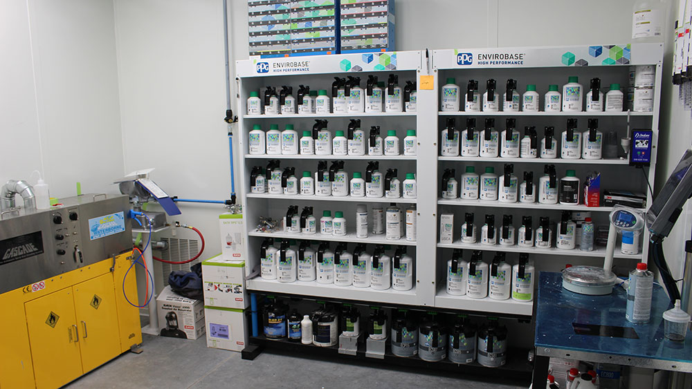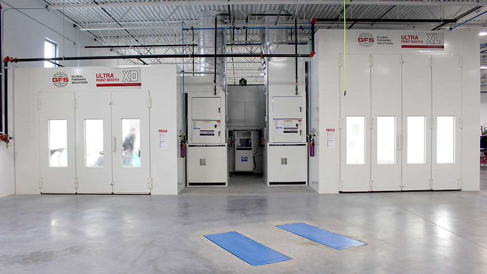 Our new location is five times the size of the original location, which gives us more room to put in more equipment. We purchased an Ultra XL Paint Booth, Ultra XD Paint Booth, Ultra XD Paint Mix Room, a dual-bay Ultra XD CTOF with SpaceSaver heater, and a REVO Rapid MC2.