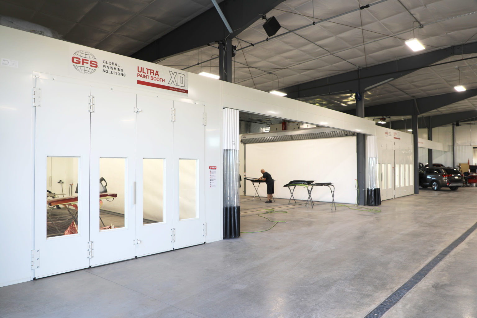 “We wanted the best equipment, and I already knew we were going to buy from GFS. Our shop addition was completely designed around our paint shop. We knew what we needed to grow. We wanted a double-wide prep booth, and we wanted a deeper booth because we spray a lot of parts, and we work on a lot of pickup trucks. Having the double-wide booth allows us to complete a repair order in one booth cycle, which is huge.”