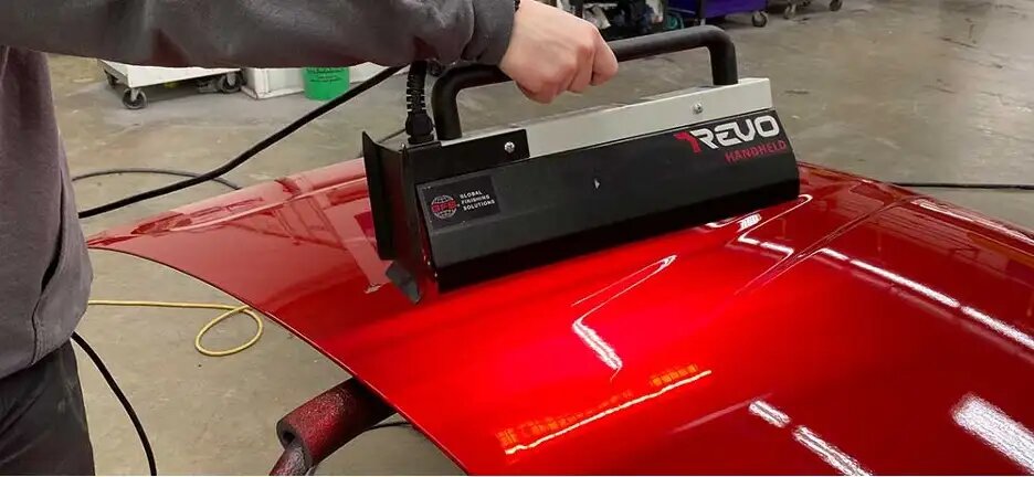 Short wave electric IR technology, such as REVO Accelerated Curing Systems from GFS, generates only a fraction of the energy costs needed to run a conventional curing system by providing exceptionally fast drying times that reduce the need for rework. REVO Systems concentrate drying energy on only the panels needing repair, delivering an even, complete cure. With electric IR technology concentrating energy only where it is needed, energy is saved by not having to heat the entire booth for small repairs or to cure just a few panels.