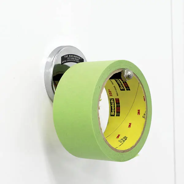 The Magahook™ is a magnetic hook that holds a variety of objects to metal surfaces, such as paint booth walls, parts caddies, lockers, toolboxes, warehouse racking, refrigerators and more. The Magahook comes in two versions — one with a 3-inch shaft and one with a U-style, soft-coated hook. Each version has a pull capacity of 65 pounds.