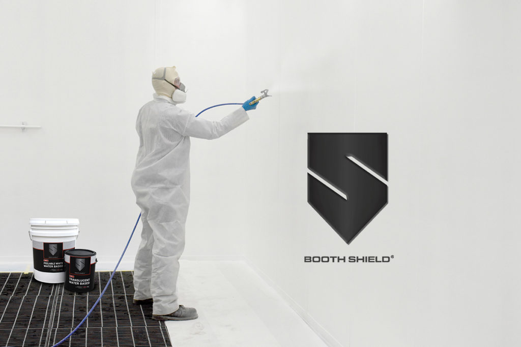 Booth Shield offers outstanding coverage to protect your investment. The coatings are easier to use than traditional paper wrap and create significantly less mess. Once dry, the floor and wall coatings can stand up to heavy use, including foot and vehicle traffic. Booth Shield Peelable White for walls and floors brightens galvanized booths, giving them a clean white finish and ensuring prime visibility for working inside the booth.